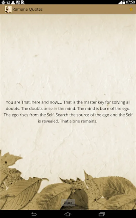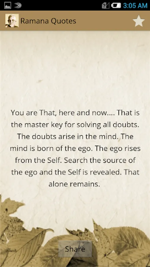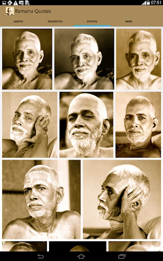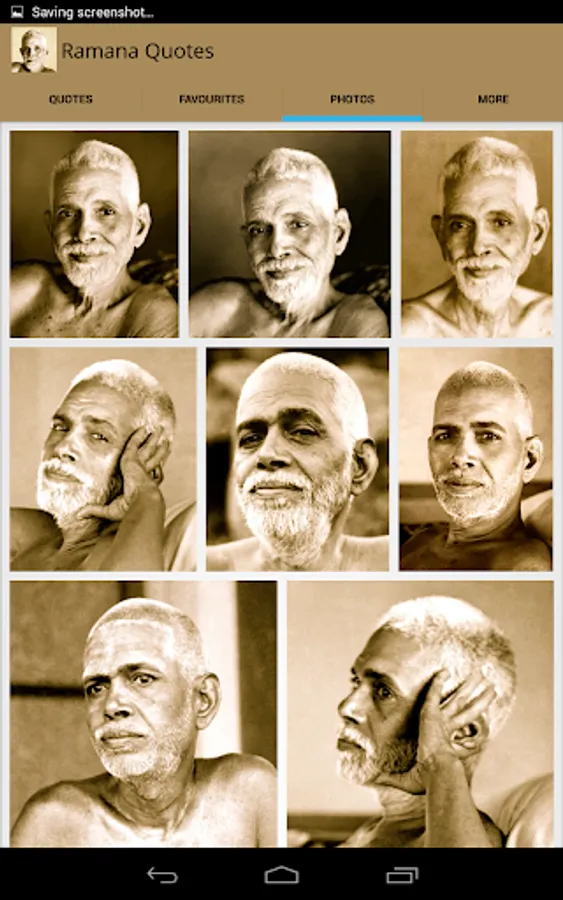 We have carefully selected 300 teaching quotes (yeah, that means one cent per quote!) from books such as “Talks with Sri Ramana Maharshi”, “Guru Vachaka Kovai”, and others, giving preference to those which are deeper and more condensed. Also you will find around 30 pictures of Sri Ramana for your enjoyment and meditation.