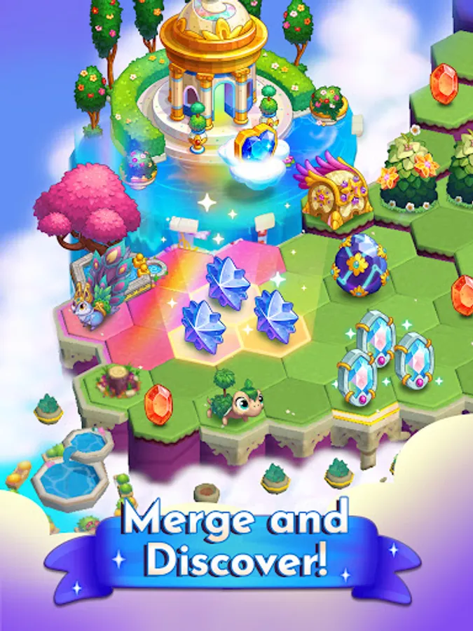 Discover and evolve new mystical creatures, complete fun quests and merge your way through challenging puzzles to restore the garden in Merge Treasures!