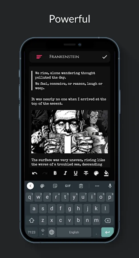 Embed images and gifs - This app enables the user not only to insert images but also gifs- a feature that enables the app to stand out from the rest. Make your texts interesting, and reading them even more interesting!