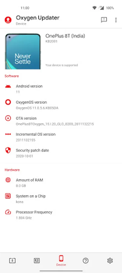 All OnePlus devices that aren’t carrier-branded (e.g. T-Mobile & Verizon) work perfectly. Carrier-branded devices run a custom, completely locked-down OxygenOS flavour. If you own such a device, be aware that you cannot manually update your firmware, even if you don’t use our app.