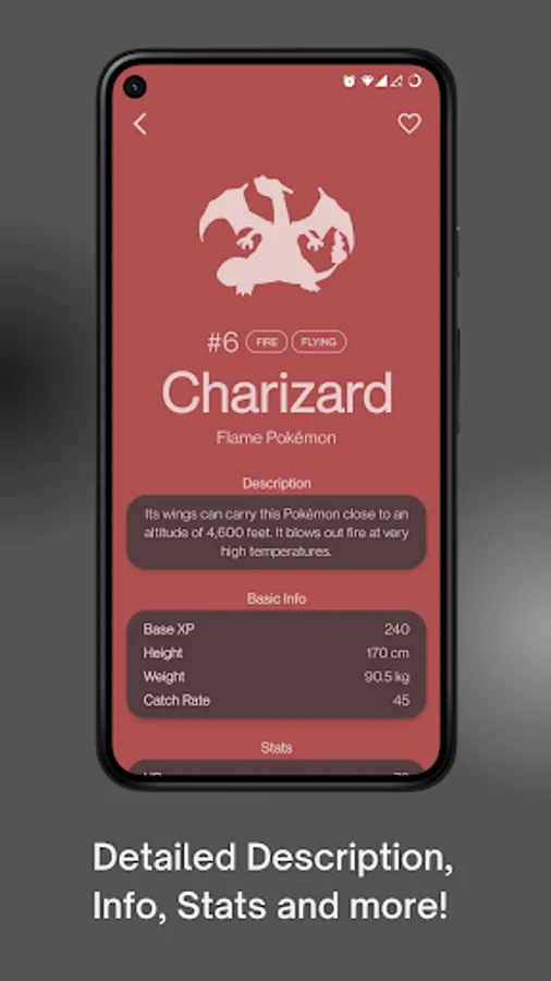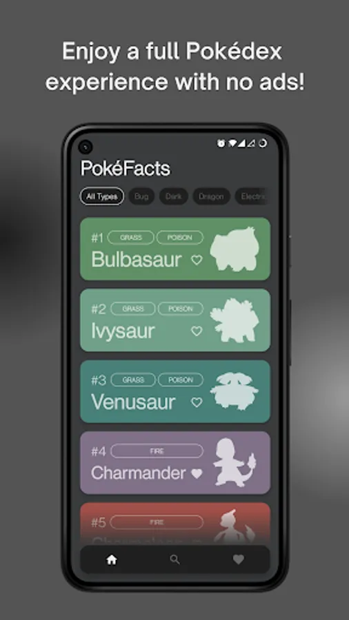 It allows you to enjoy a full Pokédex experience with no ads! Additionally, it offers detailed descriptions, info, stats and more. You can search the Pokédex and even use the Add to Favorites feature for offline viewing. PokéFacts supports both Light and Dark Mode and offers additional features like filtering by type at no cost!