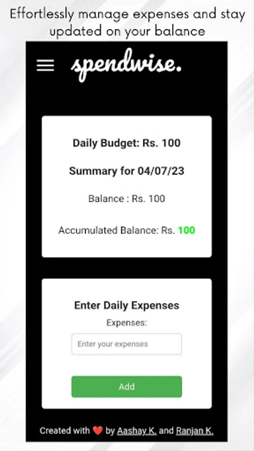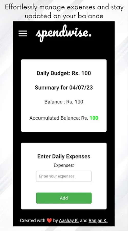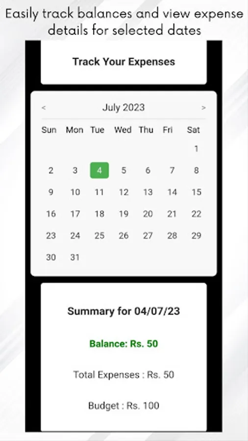 -Add daily expenses, and get an update on your total expenses for the day and remaining balance.