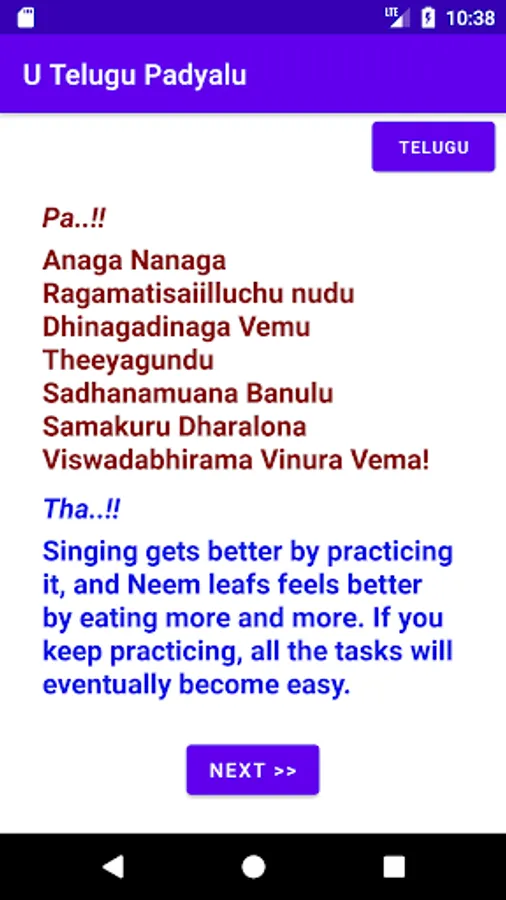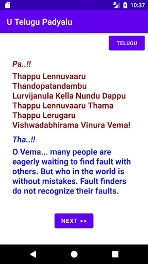 This App will help to educate and encourage anyone, who wants to read and understand Telugu Padyalu
