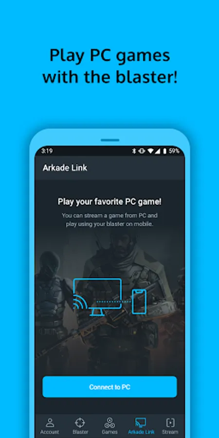 Bring your favorite PC games to your Blaster. Connect Arkade app to your PC and … that’s it. Play your favorite PC games in 360 degrees, right from your mobile phone!