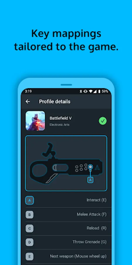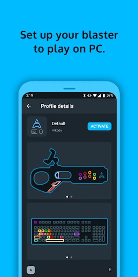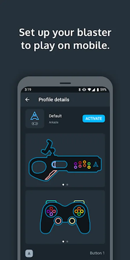 The app adds the most popular mobile and PC games. Just select a game, activate its profile on the blaster and go play. You can also map any custom button configurations for each game.