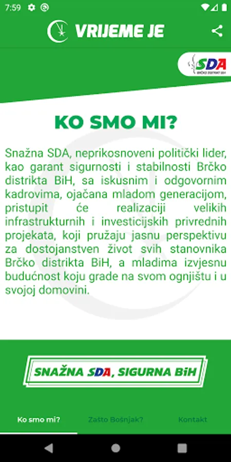 A strong SDA, an undisputed political leader, as a guarantor of security and stability of the Brcko District of BiH, with experienced and responsible staff, strengthened by the young generation, will implement large infrastructure and investment economic projects, which provide a clear perspective for a dignified life for all residents of Brcko District of BiH. young people a certain future they are building on their hearth and in their homeland.