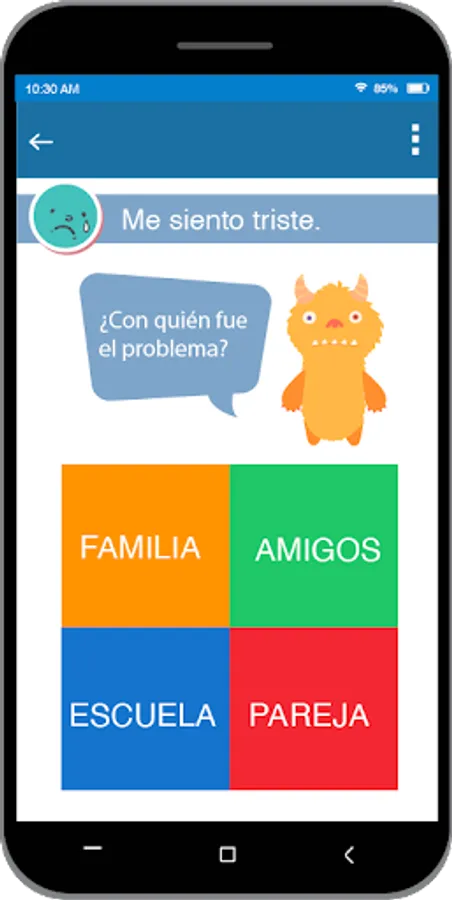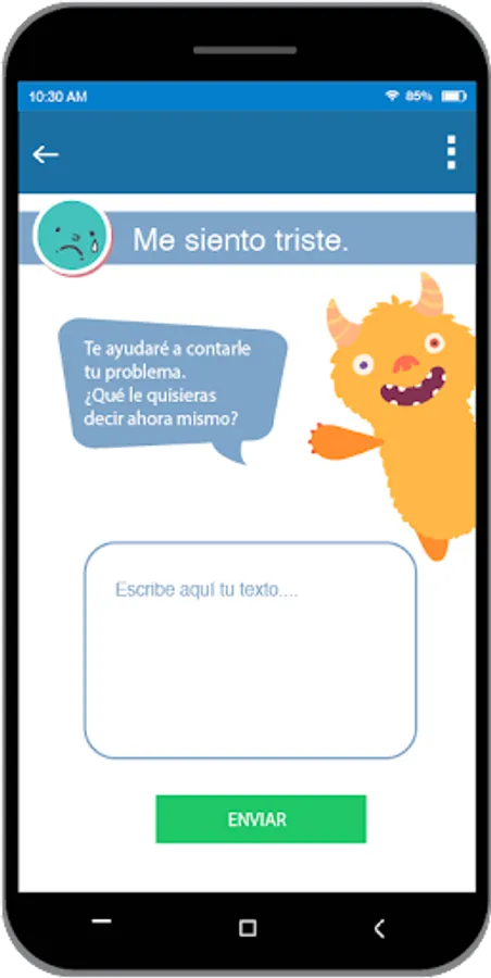 App for teenagers that helps to vent those emotional conflicts through activities recommended according to mood. It is also a means of emotional communication with the person you trust the most, to whom you can tell your problems through the app.
