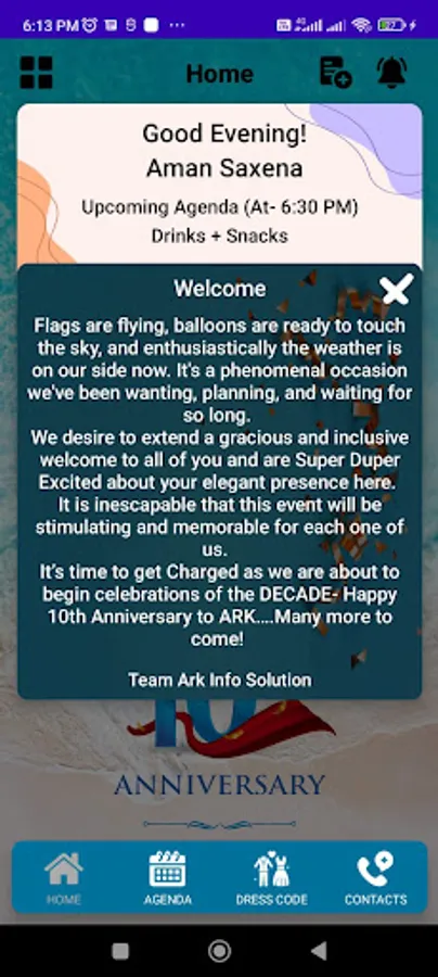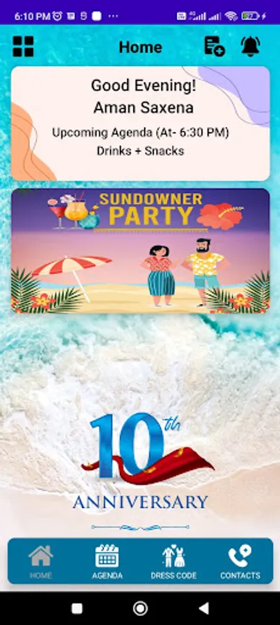 This app contains all the information related to the agenda according to each event taking place, details regarding the dress code , contact details of the event holders , also will share the daily moment information through notification. It also consist of the gallery in which the group photographs will be shared of each event.