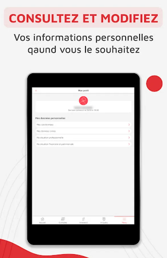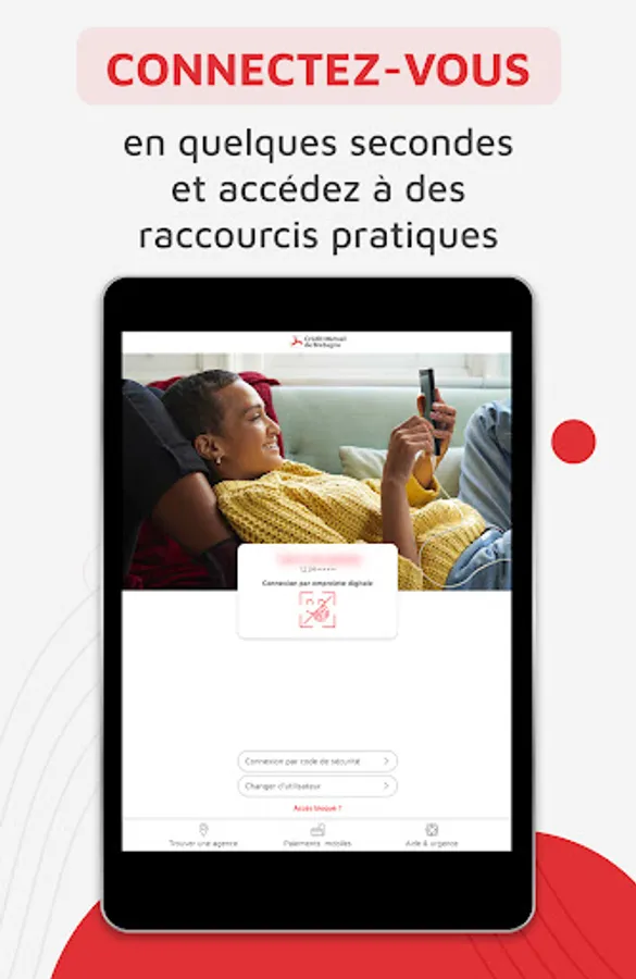 Crédit Mutuel du Sud Ouest suggests that you register your mobile as a “trusted terminal”. This registration will allow you to increase the security level of your application. Once your mobile has been registered, simply log in to the application using your fingerprint (2) or FaceID (if your mobile is compatible and registered as a "trusted terminal") or a 5-digit code that you have chosen . Thus, you benefit from additional remote banking services.