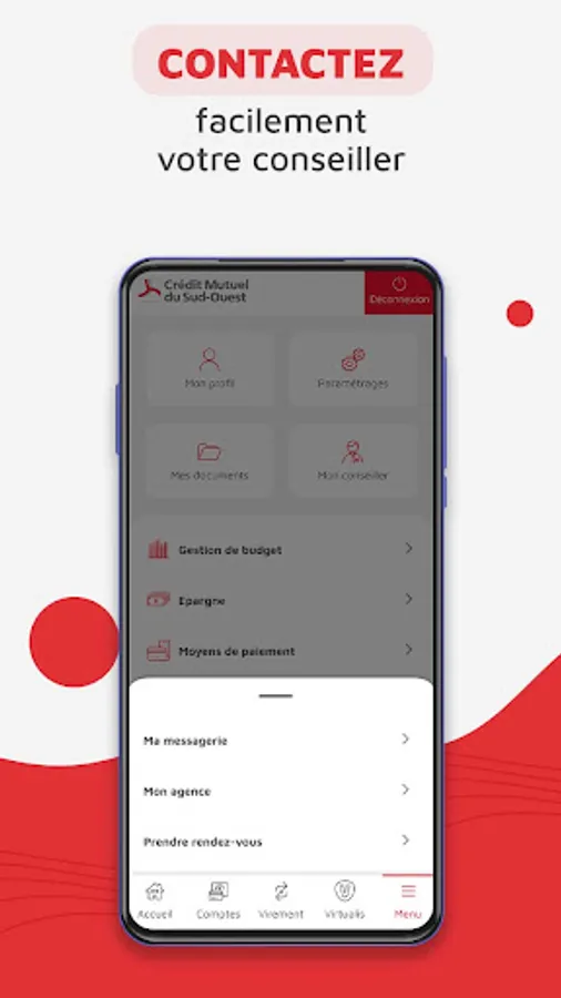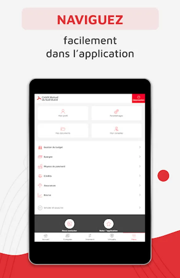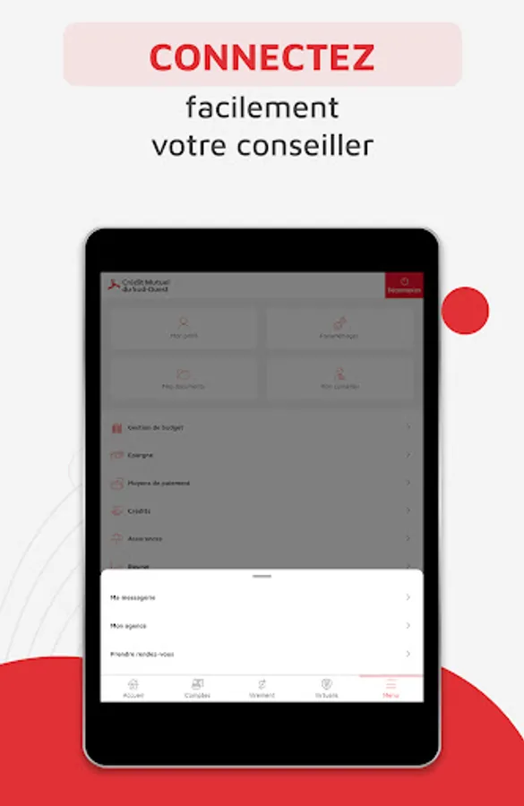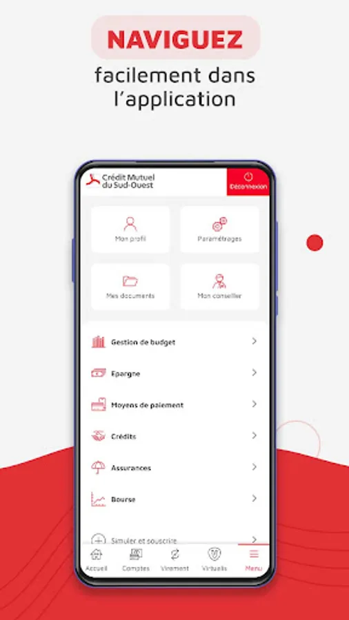 With the Crédit Mutuel du Sud Ouest CMSO application, you will be able to manage your accounts, your insurance contracts wherever you want, whenever you want, with ever greater interactivity, simplicity and security!