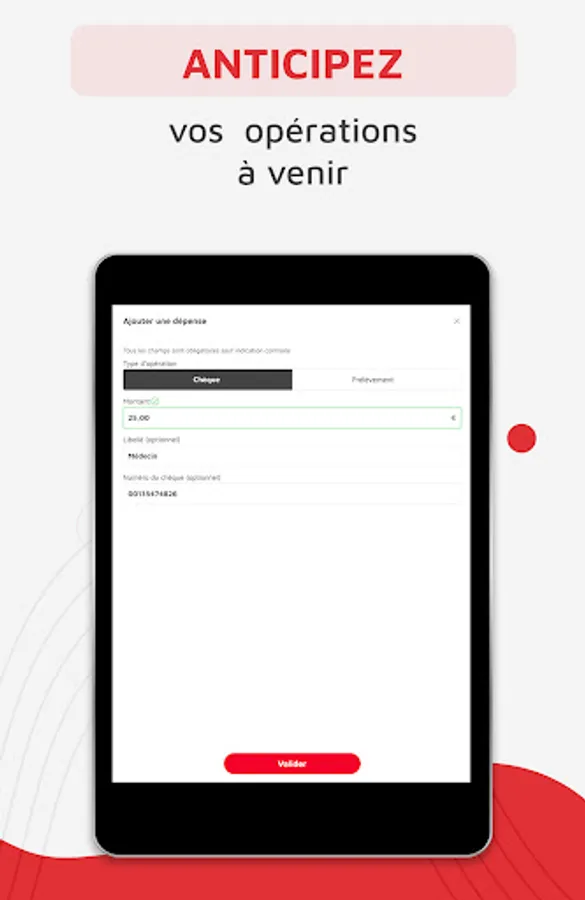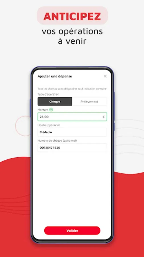 • View your latest transactions in real time, your upcoming transactions, as well as the amount of your overdraft authorization