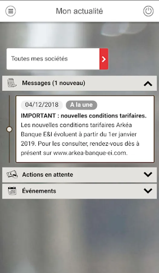 - Follow at a glance your banking news by finding on your home page your events Arkéa Bank E & I, your messages of information and your pending actions.