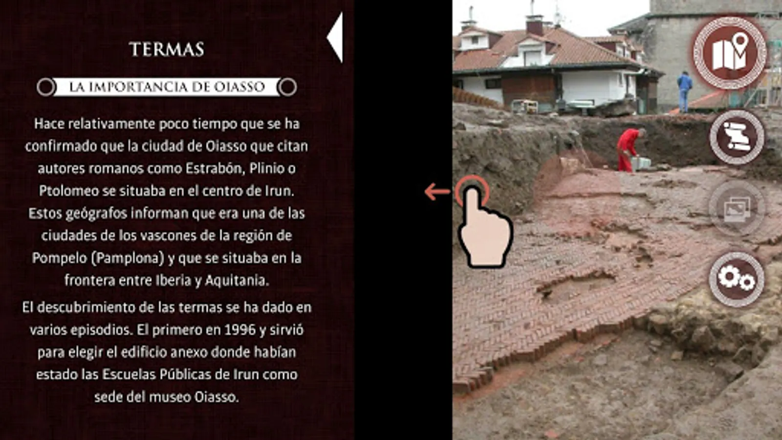 The application proposes a tour of the different places of Irun related to the Roman city of Oiasso. Guided point by point by GPS, discover through text, images and 3D reconstructions the different archaeological sites that have allowed us to know the ancient city; among other things: A port of more than two thousand years ago, the public baths or the Santa Elena necropolis.