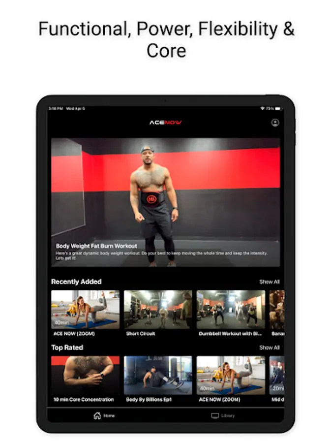 ACE NOW is a platform where you can instantly stream ACE NOW workouts, any time, anywhere. You’ll also get additional program materials, nutritional guidance, and community support with each fitness and workout program. You’ll find something accessible to every fitness level and many programs do not require any equipment.