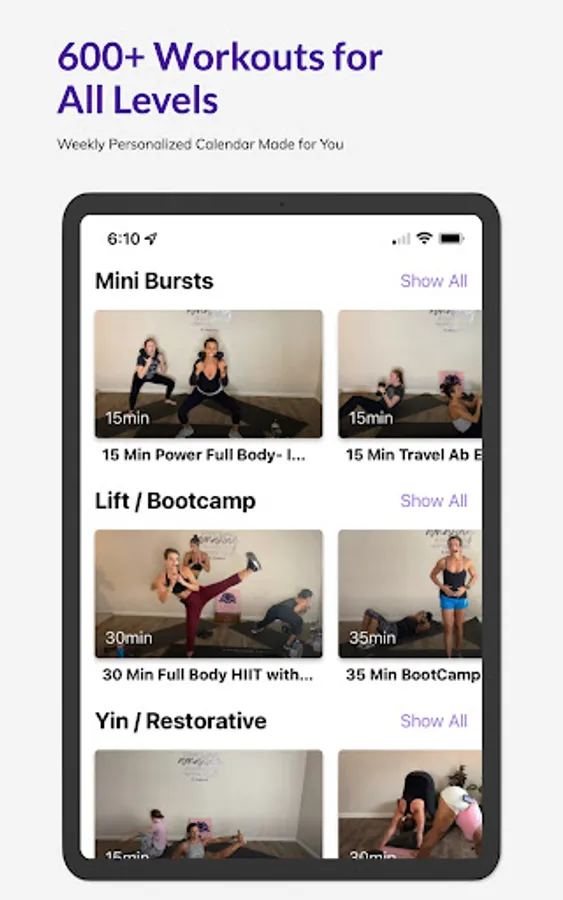 The b_inspired team sends you a Personalized Weekly Workout Calendar to follow so you don't have to think about what workout to choose each day