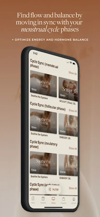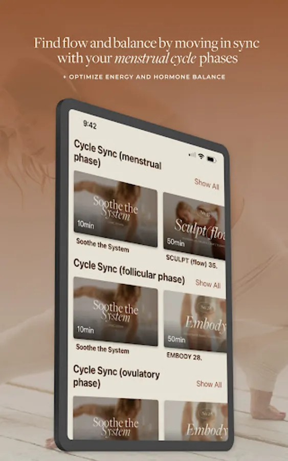 As a menstruator, hormones (and therefore mood and energy levels) are constantly fluctuating throughout the month. Cycle synching your movement practice is an excellent way to attune with your cyclical nature + honor your body. All Bodywise practices are categorized based on the phases of the menstrual cycle. Start to find your own rhythm and optimize your hormones by sweating during your Follicular Phase, channeling your power in the Ovulatory Phase, grounding and slowing down during your Luteal Phase, and replenishing during your Menstrual Phase.
