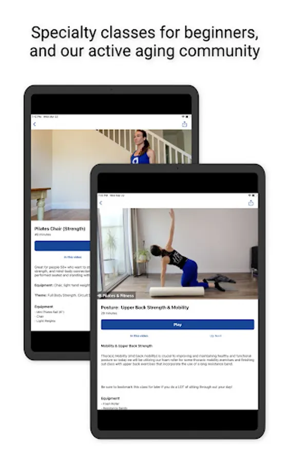 Transform your life with safe and effective home workouts specially curated by length, class type, and equipment needed for ALL ages (my 103-year-old client can attest!). Decrease those nagging aches and tightness, and feel stronger and more confident than ever with step-by-step classes led by certified fitness instructors.
