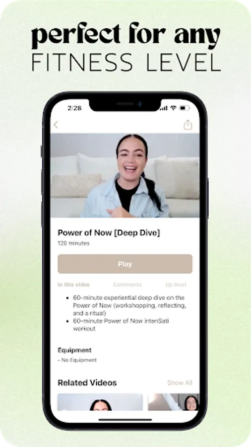 Break a sweat and boost your mood with our heart-pumping, soul-awakening workouts that fuse movement rooted in HIIT, kickboxing, and aerobics, paired with mantras, and meditation. Whether you’re a longtime intenSati warrior looking for the latest workout drop, or this is your first time and you’re looking for a hit of joy, you’re in the right place. Perfect for any fitness level.