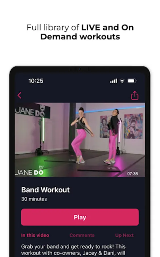 Join Jane DO Digital, to have the most fun and get the most effective workout you’ve ever done! Choose from our full library of LIVE and On Demand workouts, including our 5 signature classes; Sculpt, HIIT, Dance, Tramp, and Step.