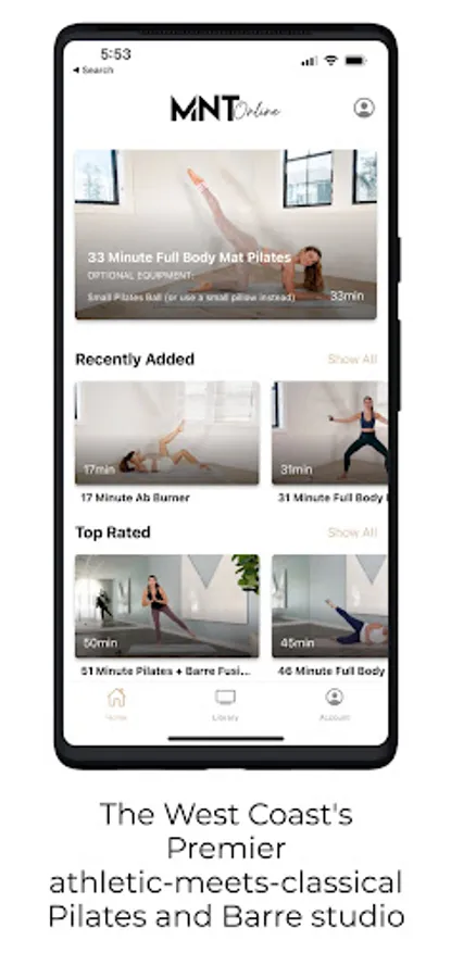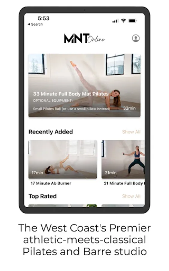 MNTSTUDIO, the West Coast's premier athletic-meet-classical Pilates and barre studio brings you on-demand streaming classes so you can feel your best anytime, anywhere. MNT Online workouts include Mat Pilates, Pilates Fusion, Barre, and Yoga Fusion. MNT classes are intelligently sequenced, challenging yet accessible, and deliver serious results. But MNT's philosophy is about more than just the physical results. It's about learning to move your body joyfully for a healthier, happier relationship with yourself.