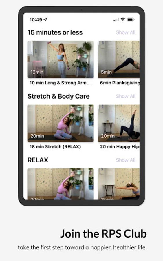Ruth has a strong background in dance & classical Pilates. RPS classes range anywhere from 5-60 minutes. They can include props like the magic circle, bands and weights but there are also lots of no equipment classes too! You can find anything from stretch and meditative classes to intense cardio burn sessions and everything in between.