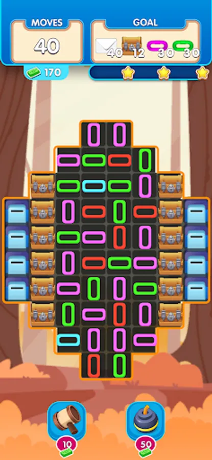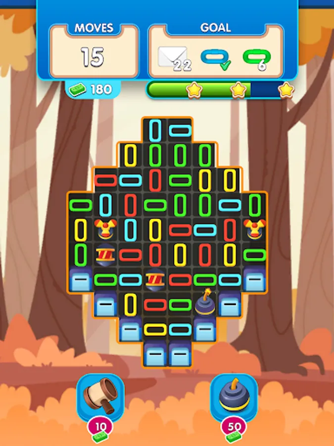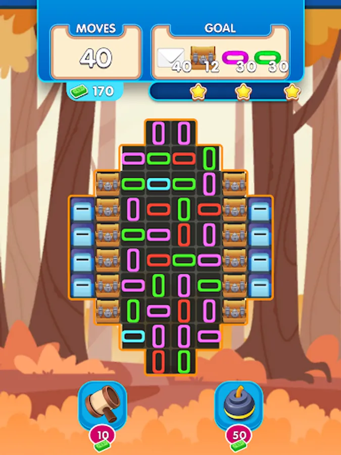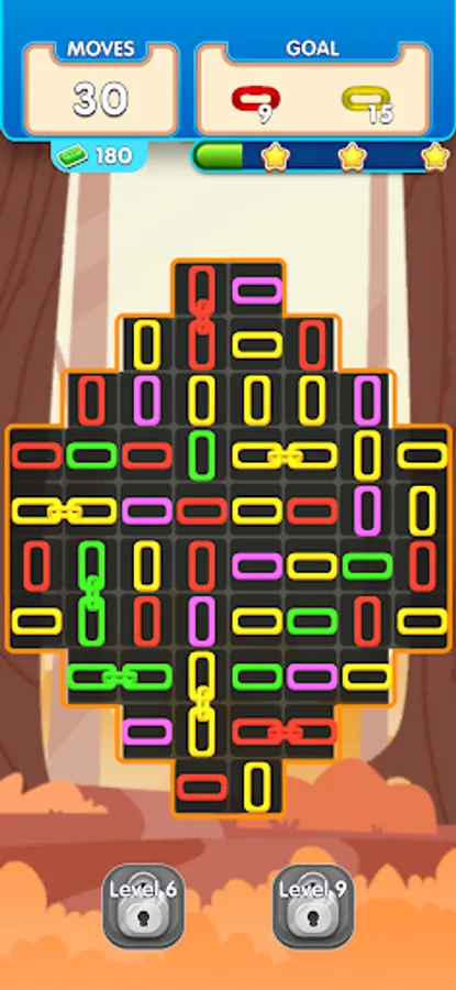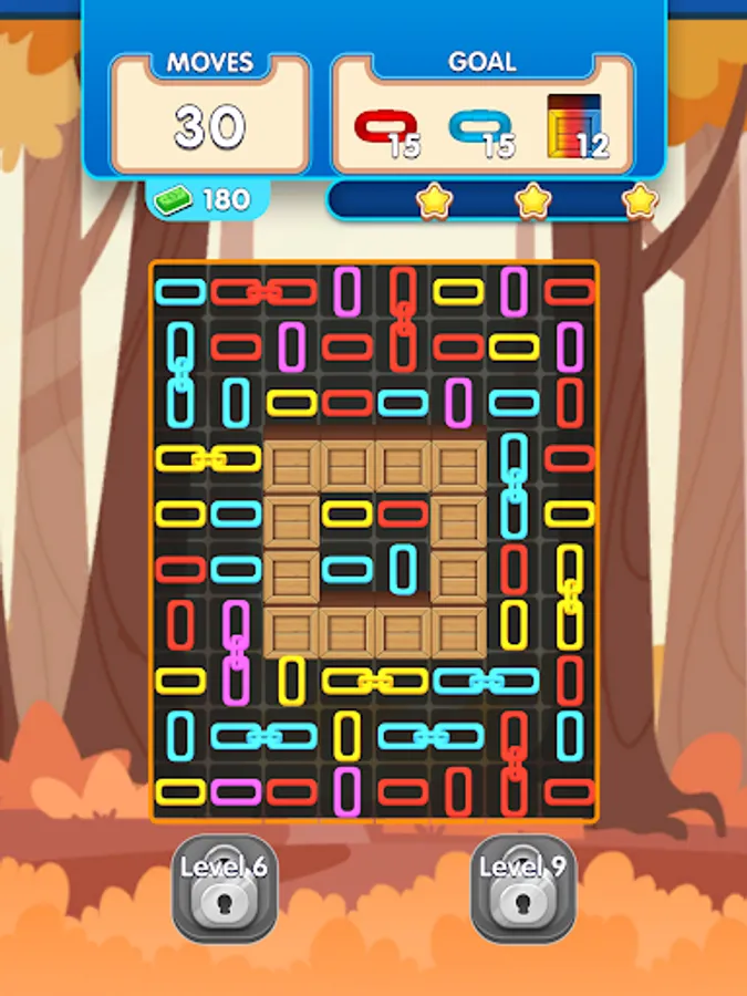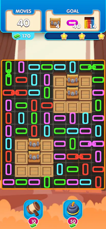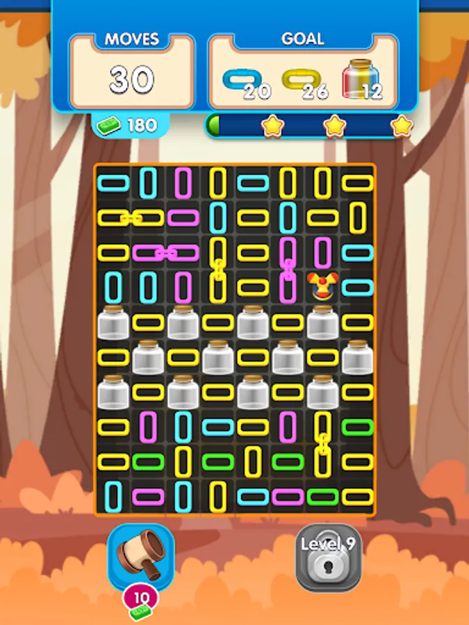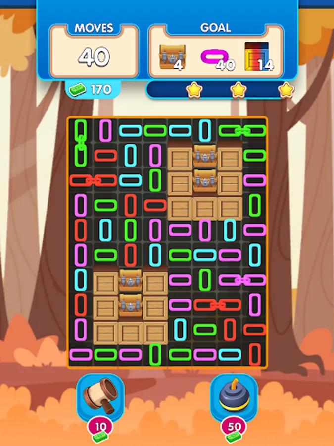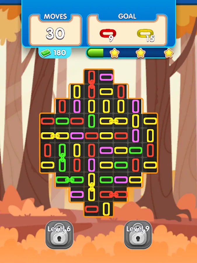 Reach the desired goal by combining chains of the same color. Break more chains by combining four and five chains.