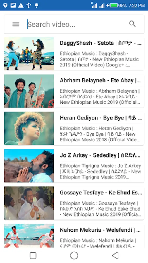 Using this app you can watch all ethiopian musics for free. amharic music, oromo music, tigirigna music, wolita and other ethiopian traditional and modern musics.
