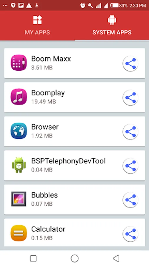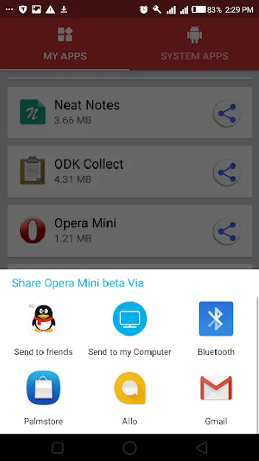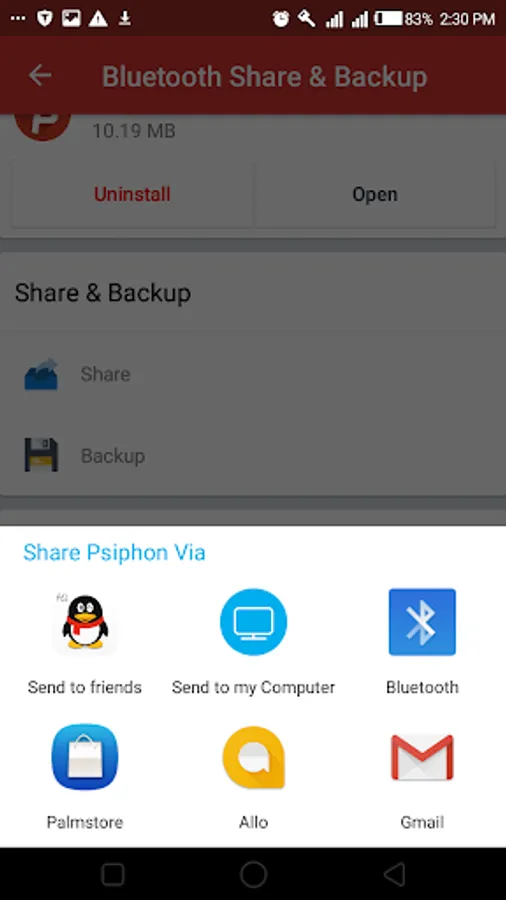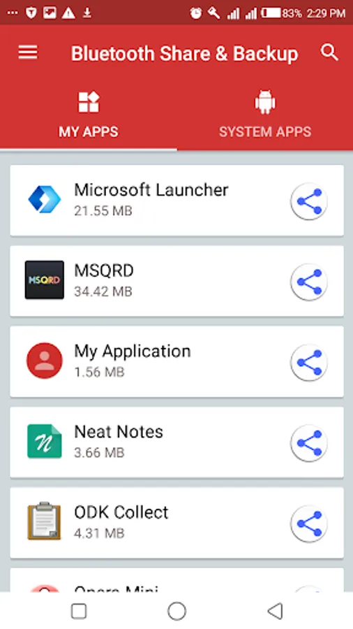 * Share apps via Bluetooth and other sharing tools.