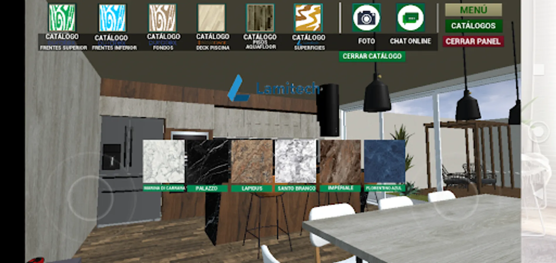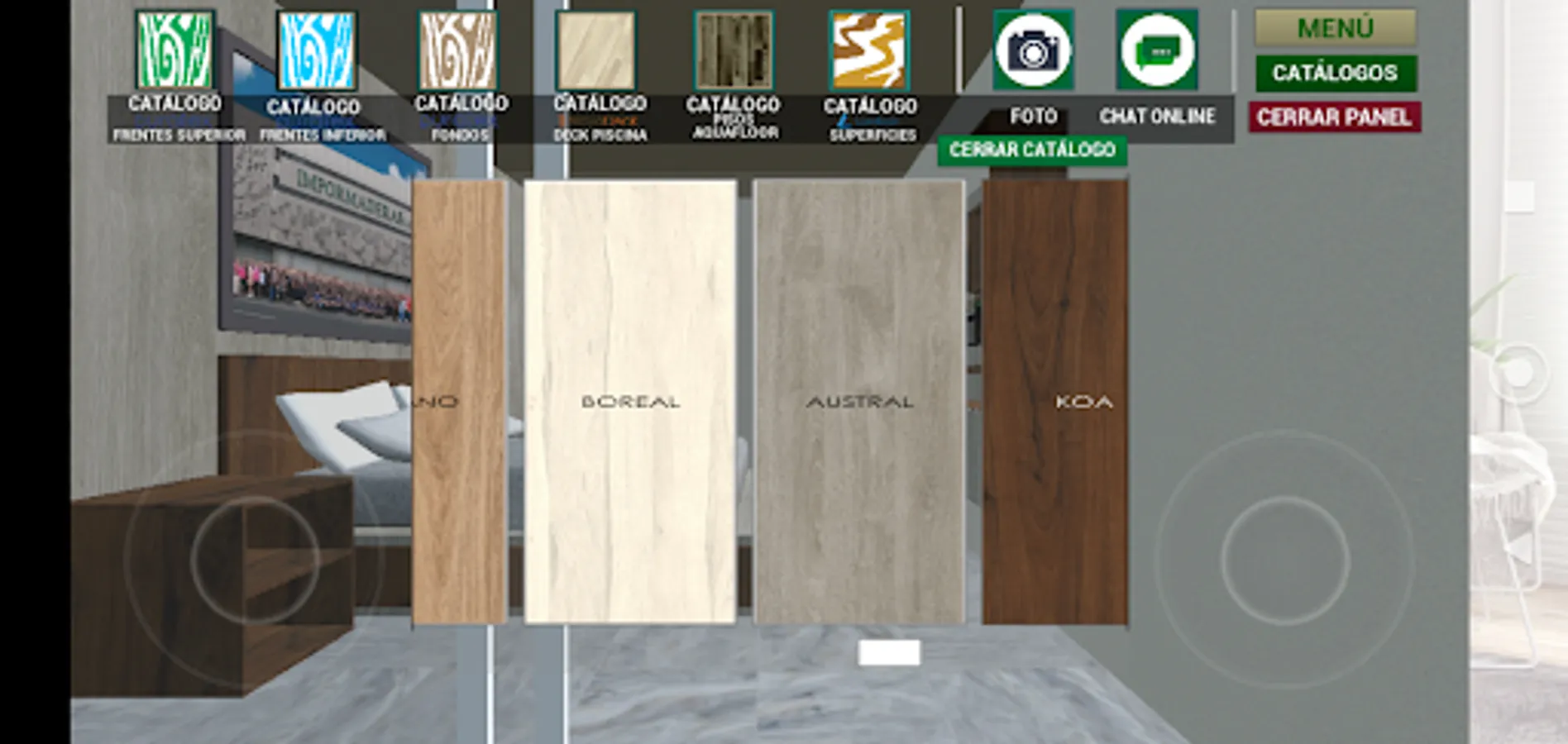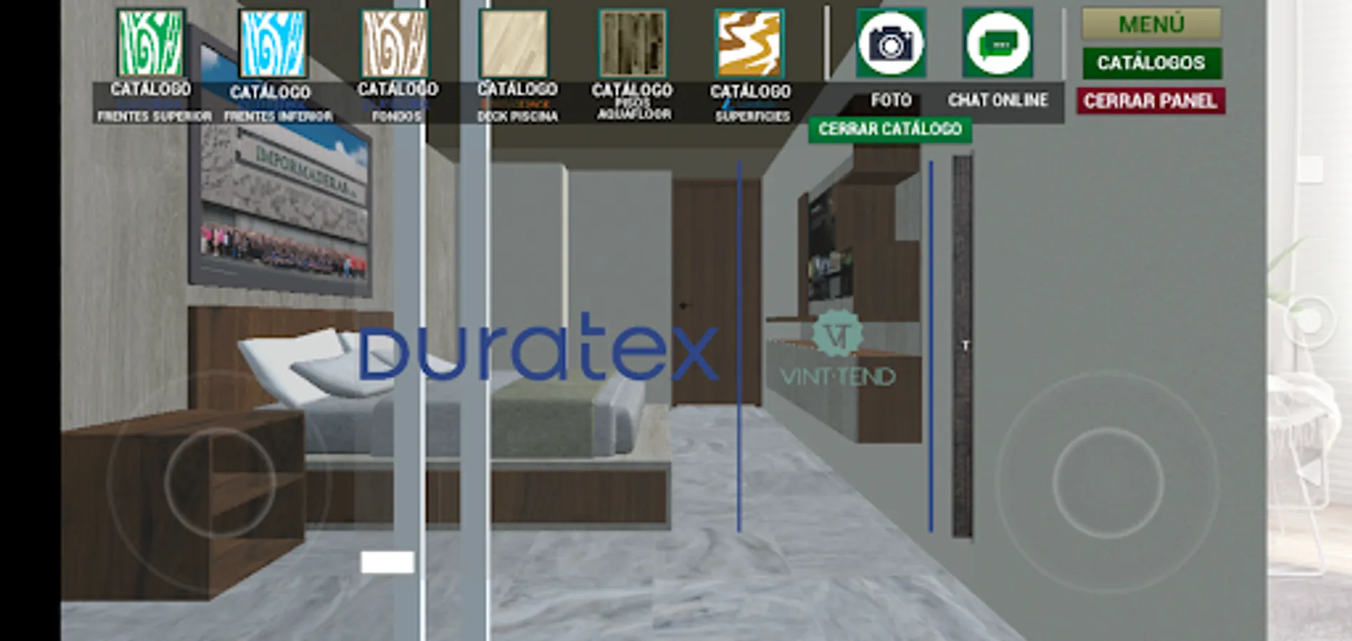 App de IMPORMADERAS . ¡¡¡Fue creado pensando en ti!!!. En esta App (Simulador) podrá visualizar los diseños de laminados de nuestro portafolio DURATEX, LAMITECH y NOVADECK , e interactuar cambiando texturas a su gusto, además de personalidad a nuestra casa modelo, podrá ver la funcionalidad de algunos de nuestros herrajes, accesorios y sistemas corredizos de nuestras marcas DUCASSE, EINHELL y STARAX . Es una App de movimiento libre para que puedas recorrer y ver cada detalle y rincón de nuestro ambiente. Esperamos le saque mucho provecho.
