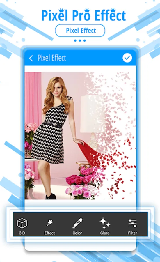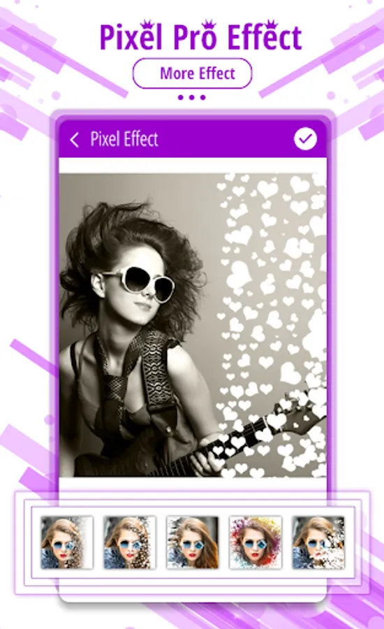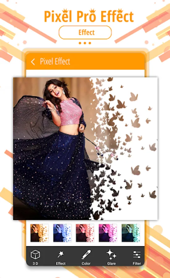 Pixel Pro Effect contains lots of 3D pixel effects, 2D pixel effects, glares effect, Filters, emojis and plus you can apply text on application. These all will help you to make your photo wonderful with perfect effect and you can show off on social medias with direct share.