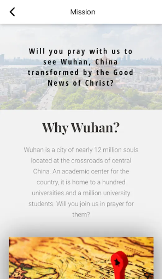 Wuhan is a city of nearly 12 million souls located at the crossroads of central China. An academic center for the country, it is home to a million university students. Will you join us in prayer for them?