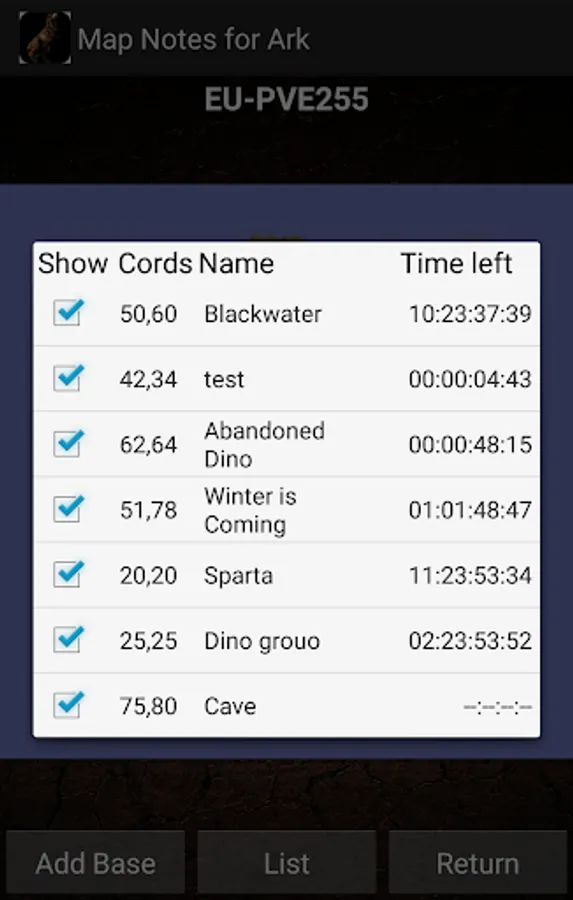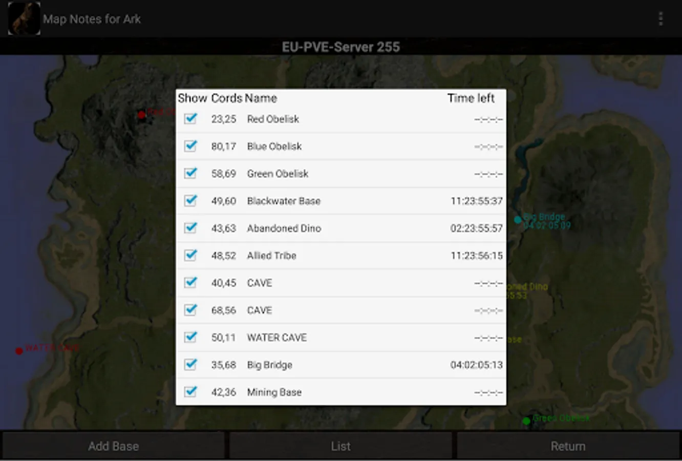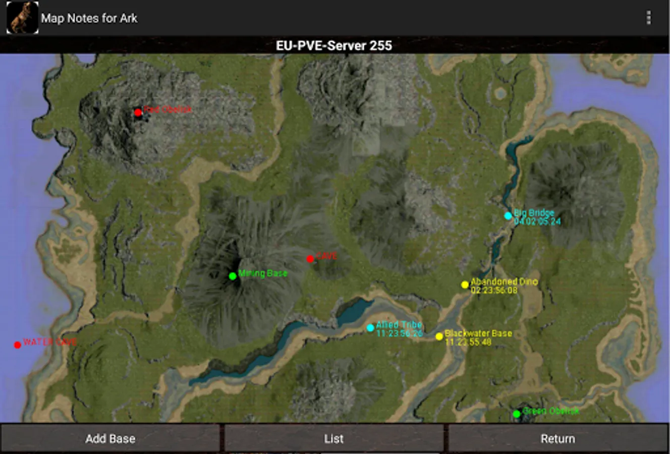 This is an App developed by the community of players of Arking game. Its meant to be a tool to add bases or points of interest to the map so you can remind where they are. You can also setup timers for those bases.