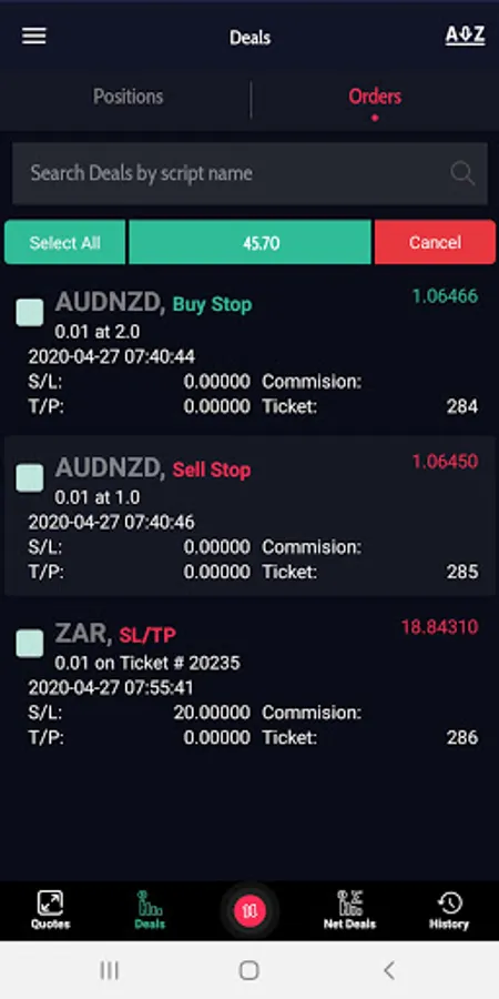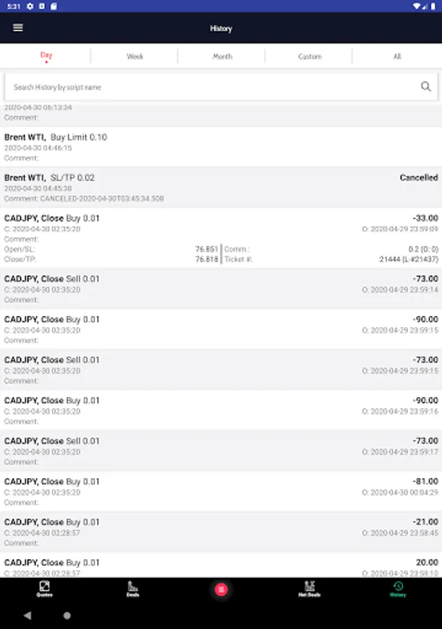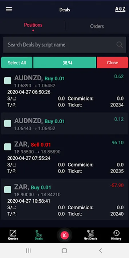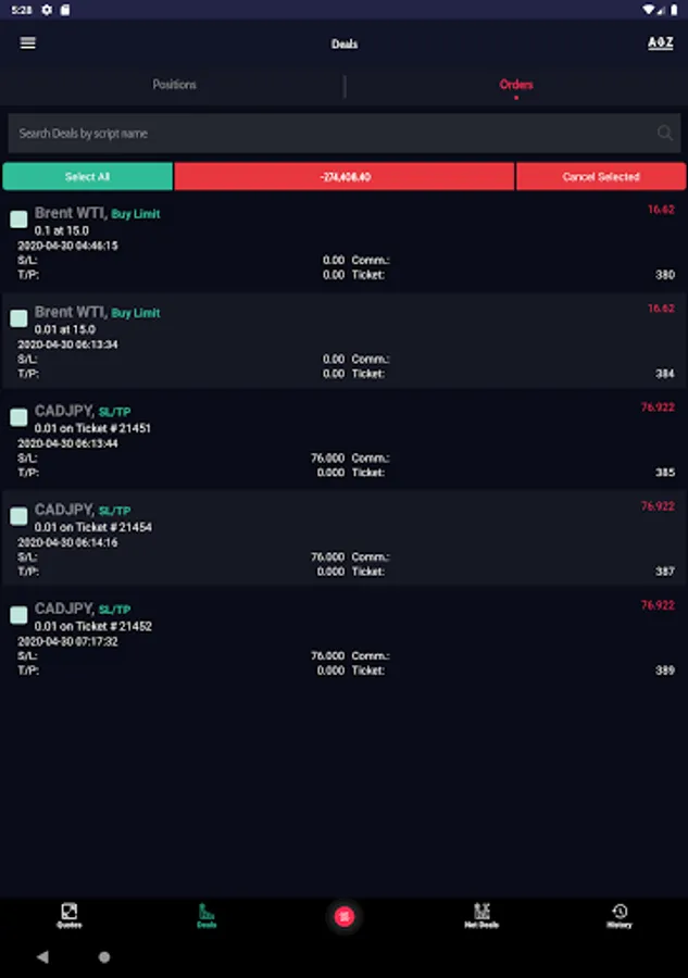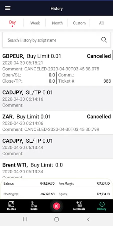 * Ability to check your Trades, Orders, History.