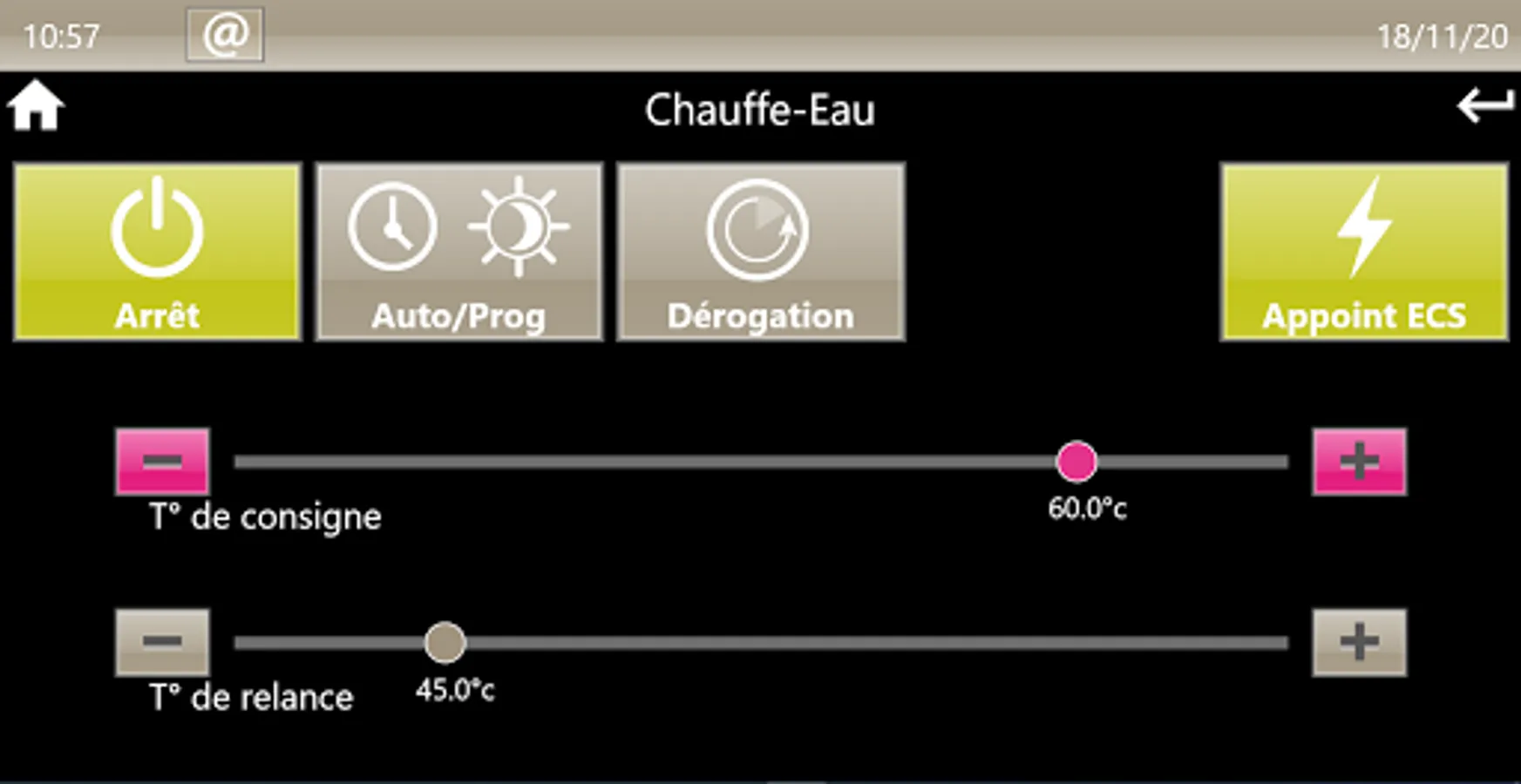 The Arkteos application offers the same functionalities as the touch screen application of your PAC, namely: