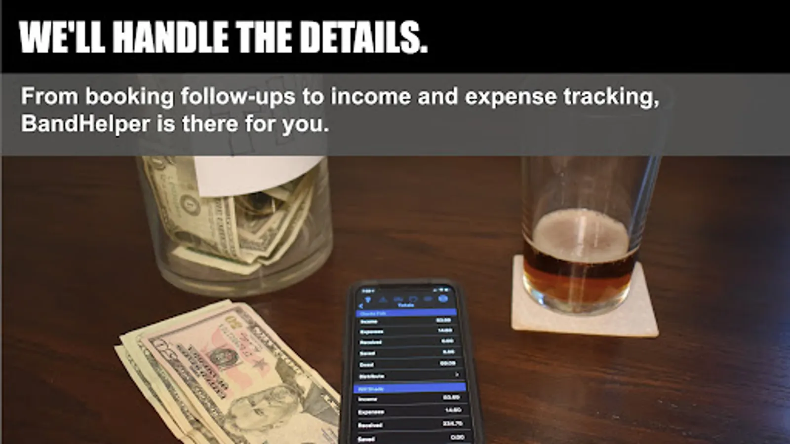 Booking gigs is easier with BandHelper's automated invitation and reminder notifications. Schedule reminders to yourself to follow up on bookings or send promo materials. Set up checklists to help promote or pack for a gig, and build a stage plot to send to the venue. BandHelper even helps split the money after a gig and tracks income and expenses over time.