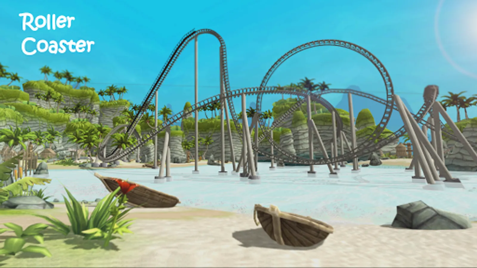 Welcome to Amusement Island VR. A place, where you can experience the fun and the craziness of a tropic island in Virtual Reality. Just put on your VR Headset, and start your adventure. Collect coins that are spread throughout all of the island to get a chance to use all of the attraction experiences: the crazy roller coaster, zip-line, jet ski and diving. All of this is combined in a sunny island by the beach, where, among other attractions, you can also experience the tropical wilderness and nature.