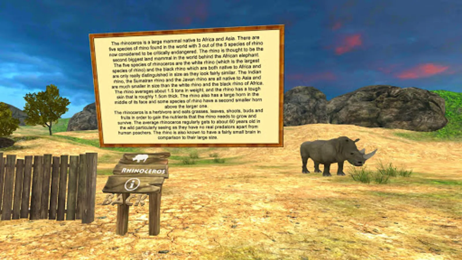 Ever wanted to visit a zoo where animals just run around, instead of sitting in their cages? VR Zoo brings that experience to life. Just put on your VR headset, and you will be transferred into our awesome zoo with over 10 different animals (yet). Not only you can watch and interact with the animals, but you can also read about all the species that are living in our zoo. Getting tired of walking? Get into your car and drive that around instead of walking. Also, the realistic environment and sound effects will bring you the sense of actually being in a real life wild zoo.