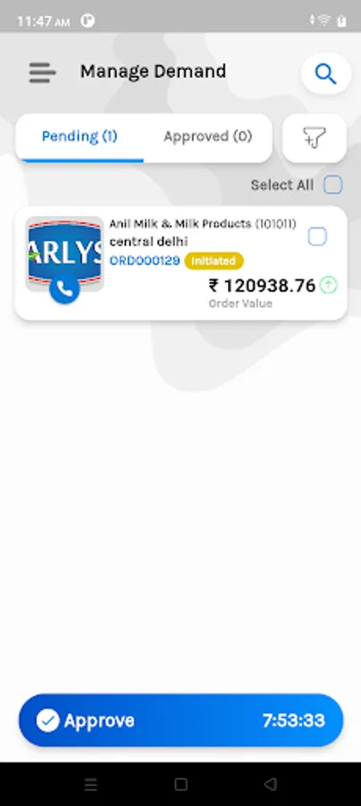 The accounts head can use the app for approving orders if not approved by the sales head.