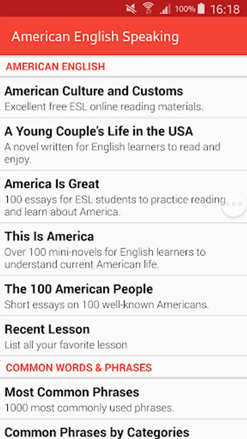 With over 400 lessons on life and American culture . You will learn how to speak like an American. Through each lesson you learn more about life and culture of people pleasing. You can even practice more on listening and speaking skills.