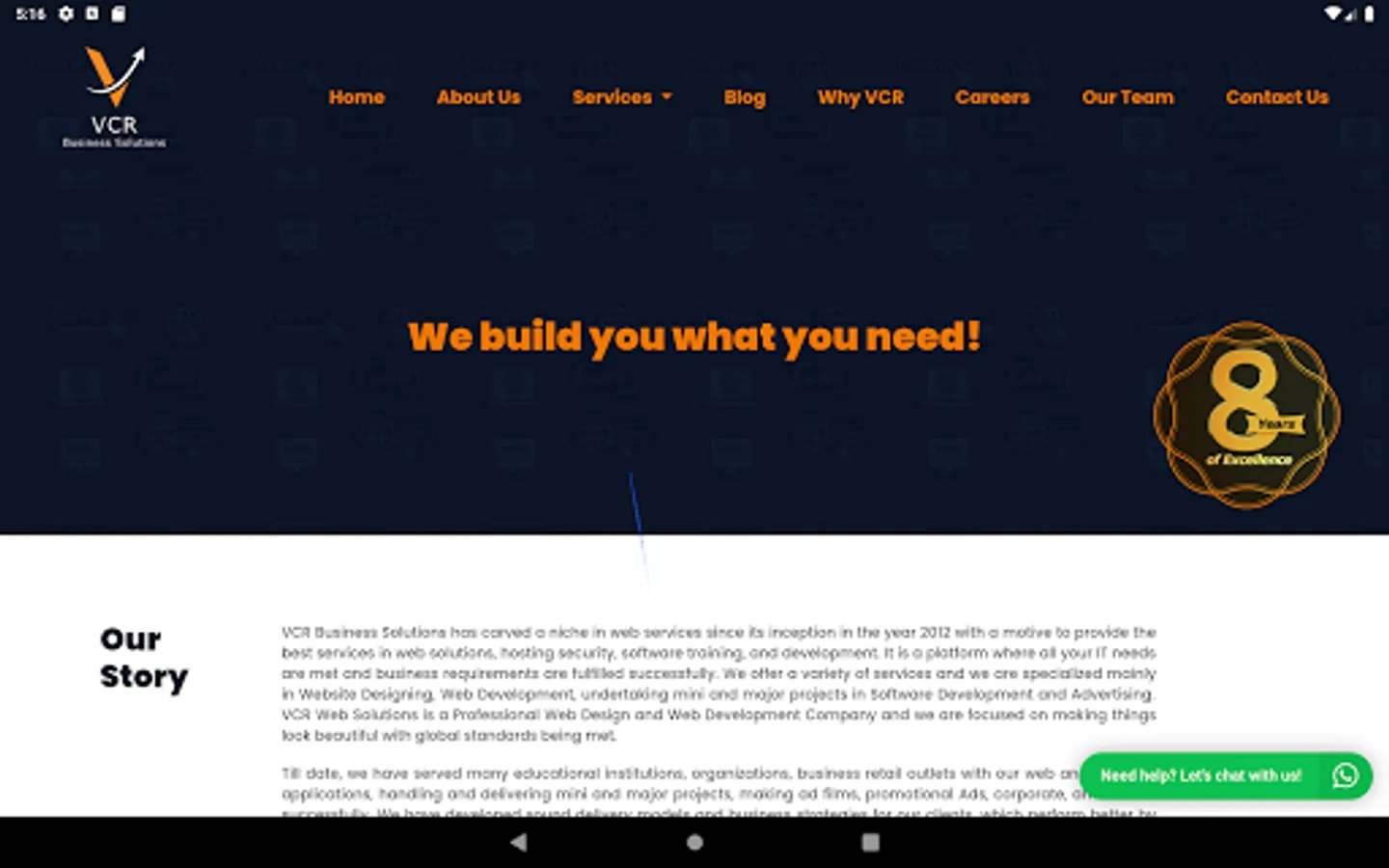 VCR Business Solutions has carved a niche in web services since its inception in the year 2012 with a motive to provide the best services in web solutions, hosting security, software training, and development. It is a platform where all your IT needs are met and business requirements are fulfilled successfully. We offer a variety of services and we are specialized mainly in Website Designing, Web Development, undertaking mini and major projects in Software Development and Advertising. VCR Web Solutions is a Professional Web Design and Web Development Company and we are focused on making things look beautiful with global standards being met.