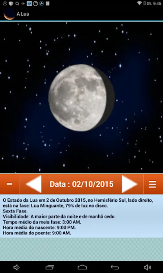 With the Lunar Calendar Biodynamic application you have in hand the phase in which the Moon was, is or will be according to a chosen date.