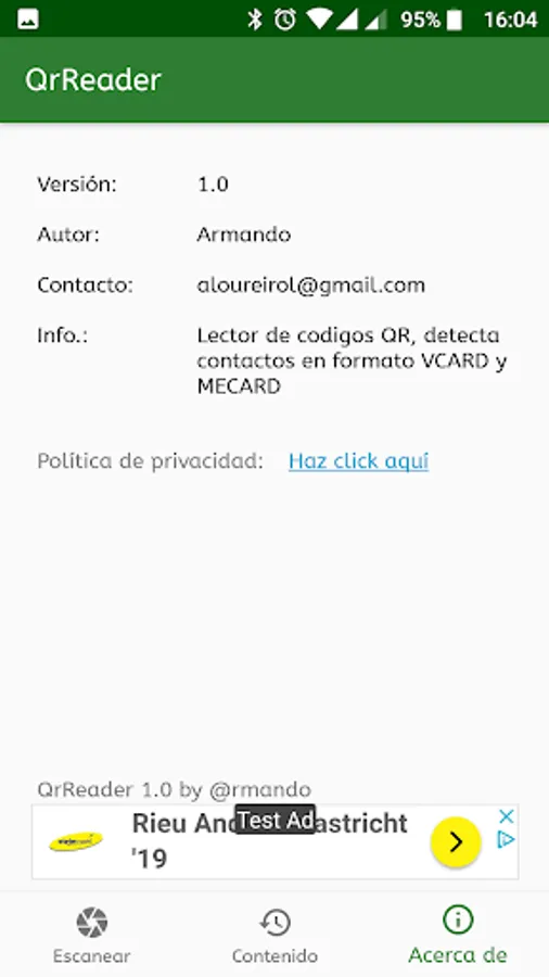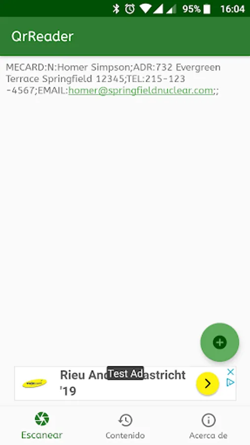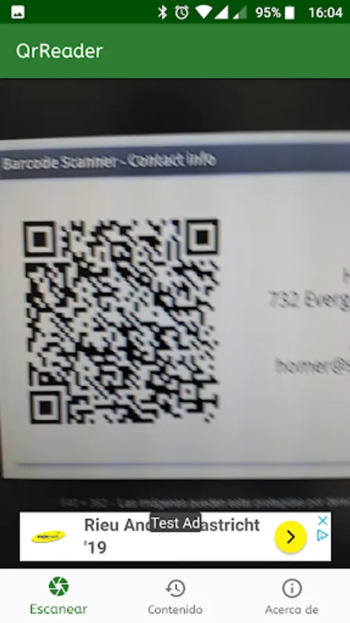 Get the data of a contact card in QR format and the option to add contact is implemented. It also interprets links to web pages and email addresses.