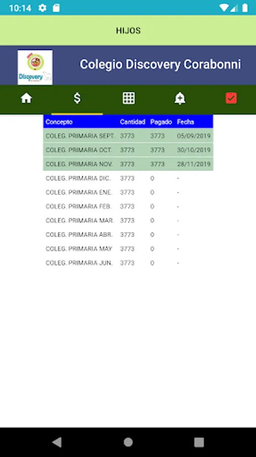 Application for consultation of notices, calendars, payment kardex and qualifications.