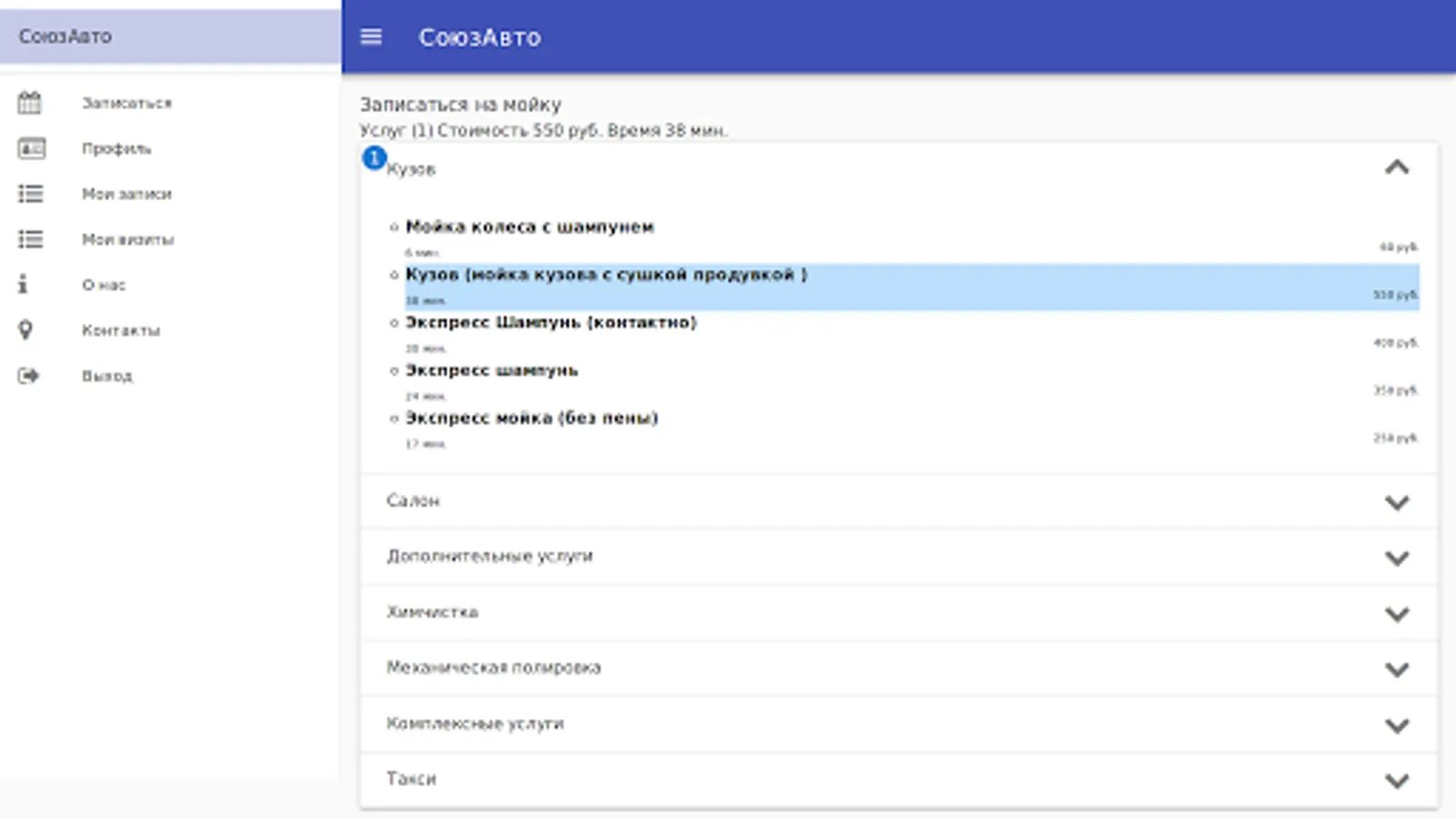 The application provides an opportunity to pre-record in the network of car wash complexes SoyuzAVTO, as there is the possibility to leave feedback in the application, which will give feedback to the application develops, wait for new updates.