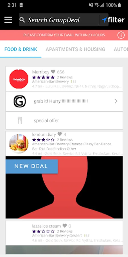 Enjoy exclusive deals, daily specials, and more from all the restaurants and bars in your college town! It includes key features like Find people (people within the universities, phone contacts and Facebook friends), Add Favorite, view reviewed products/services, connections, shows the deals, add photos & videos and add reviews. Clicking on a deal will make the user to use the deal. User can enter the amount paid or directly add to the savings.
