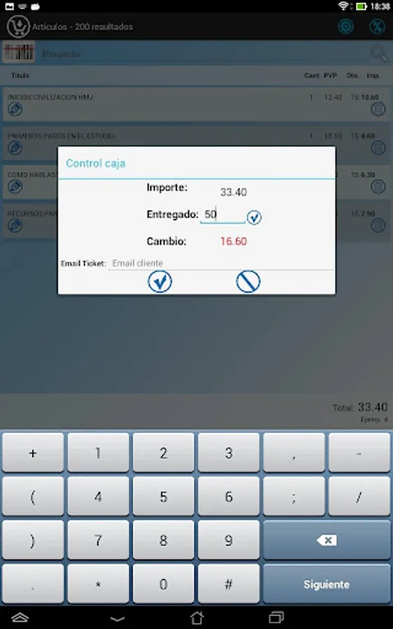 Book sales, cash control, sending tickets by e-mail, even sell books that are not in your database!