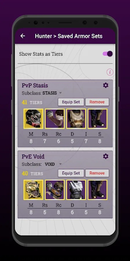 This simple yet powerful app is designed to help guardians get the most out of their armor in Destiny 2 (D2). Don't let those valuable stat points go to waste -- reach your full potential as a guardian! Especially in the Crucible, having optimal stats can make or break a competitive PvP match. The app also includes the ability to save and equip armor sets with the click of a button. Begin your journey to perfection today.