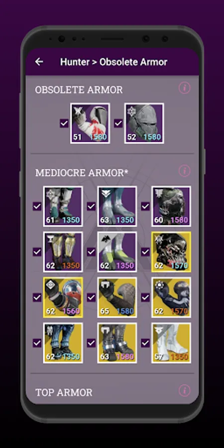 This is a secondary tool within the app which will sort your armor into three categories. The categories are based on how useful each armor piece is in producing great armor sets.