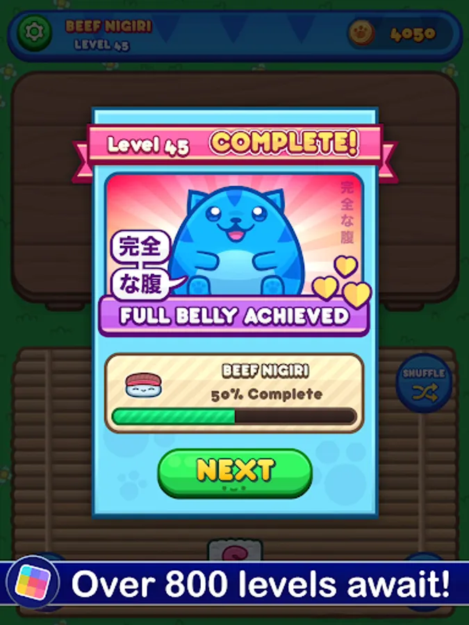 Tons of Levels: Sushi Cat has a huge appetite, and that means you'll need to serve up a lot of sushi. More than 800 levels await!