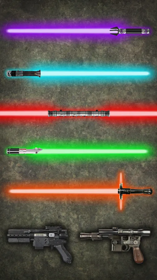 In the laser weapons group of the simulator, you will find lightsabers and laser guns. Customize your lightsaber with the color you like best and select from different types of handles, dark side or force, and create a custom weapon that suits your style. With a simple press on the handle, you can draw or hide the lightsaber, and when you shake the device, you will hear the sound of its powerful impact.